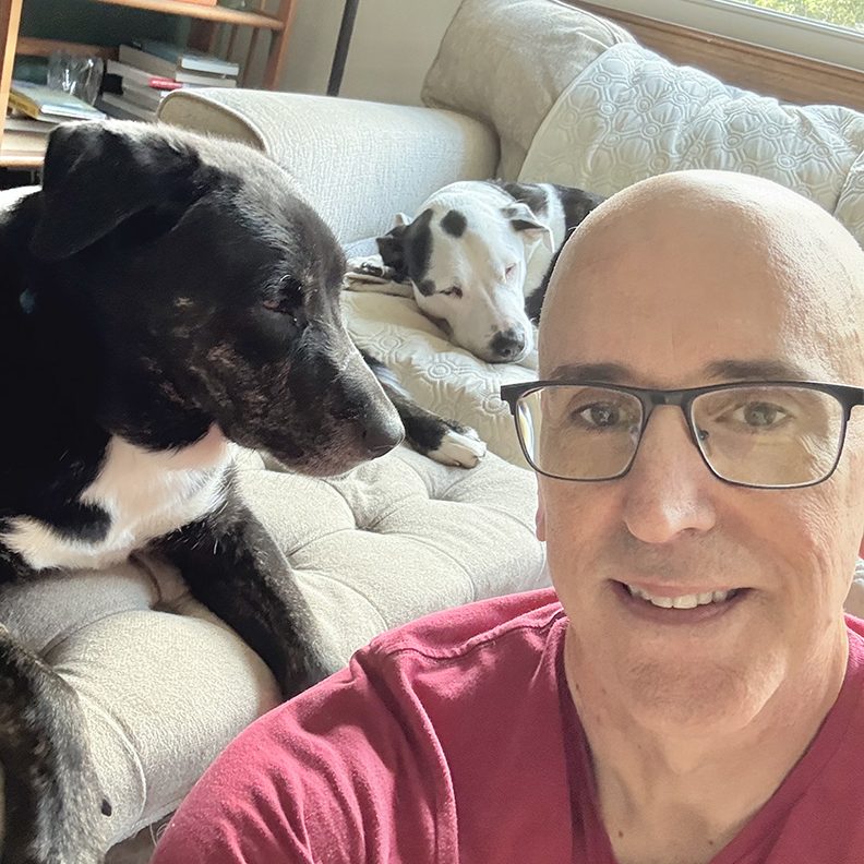 More than a pet sitter, also a neighbor. My name is Mark, and I've lived in Sharon with my wife since 2007. In that time, we've usually had one cat and two dogs. At the moment, Ollie and Moose (pictured) are keeping us grounded. Having both cats and dogs in my life since I was young, I've always found them a constant source of joy and support. Their unconditional love is impossible to resist.